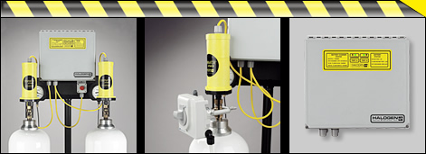The Terminator™ Actuator is an economical safety device that automatically closes a chlorine cylinder or ton container valve in case of a leak or emergency. The Terminator is easily installed on either cylinders or ton containers that use standard USA style chlorine valves. The Terminator is a DC powered impact device that provides 40 to 50 ft-lbs of emergency closing torque as recommended by the Chlorine Institute. The Terminator is installed after process connections are made and the valve is opened. The Terminator actuator uses the Gemini Controller to provide power and logic to the actuator. The Gemini is a 2-channel controller with an integral 12V battery that provides main and backup power. If AC charging power is interrupted and not restored within 3 to 5 days, the Gemini will eventually initiate an emergency close to protect against an unguarded gas system. The Gemini provides a remote activation input for panic switches, gas detectors or activation via SCADA and also offers a relay output that indicates when an emergency close operation has been performed.